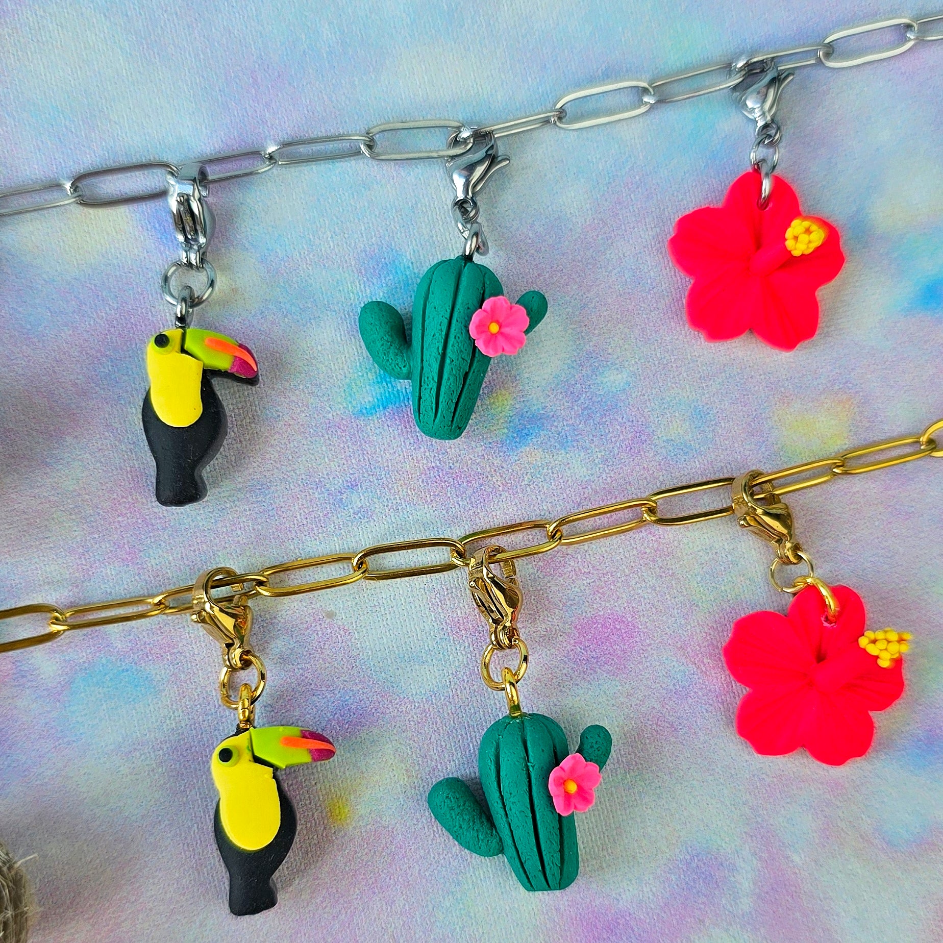 The charms have tiny clasps on them, you can choose between gold or silver. The clasps make it super easy to add or remove from your necklace!