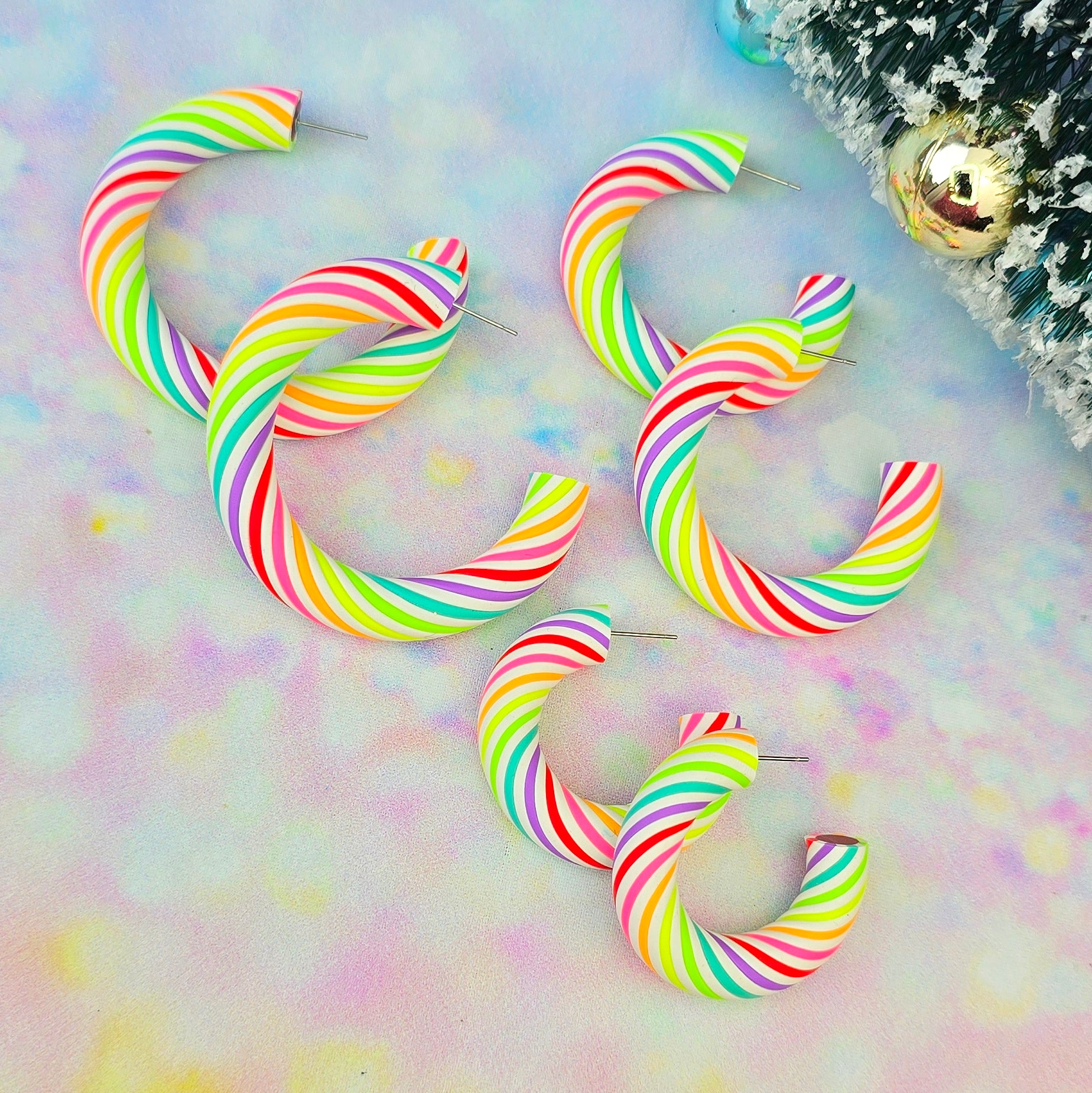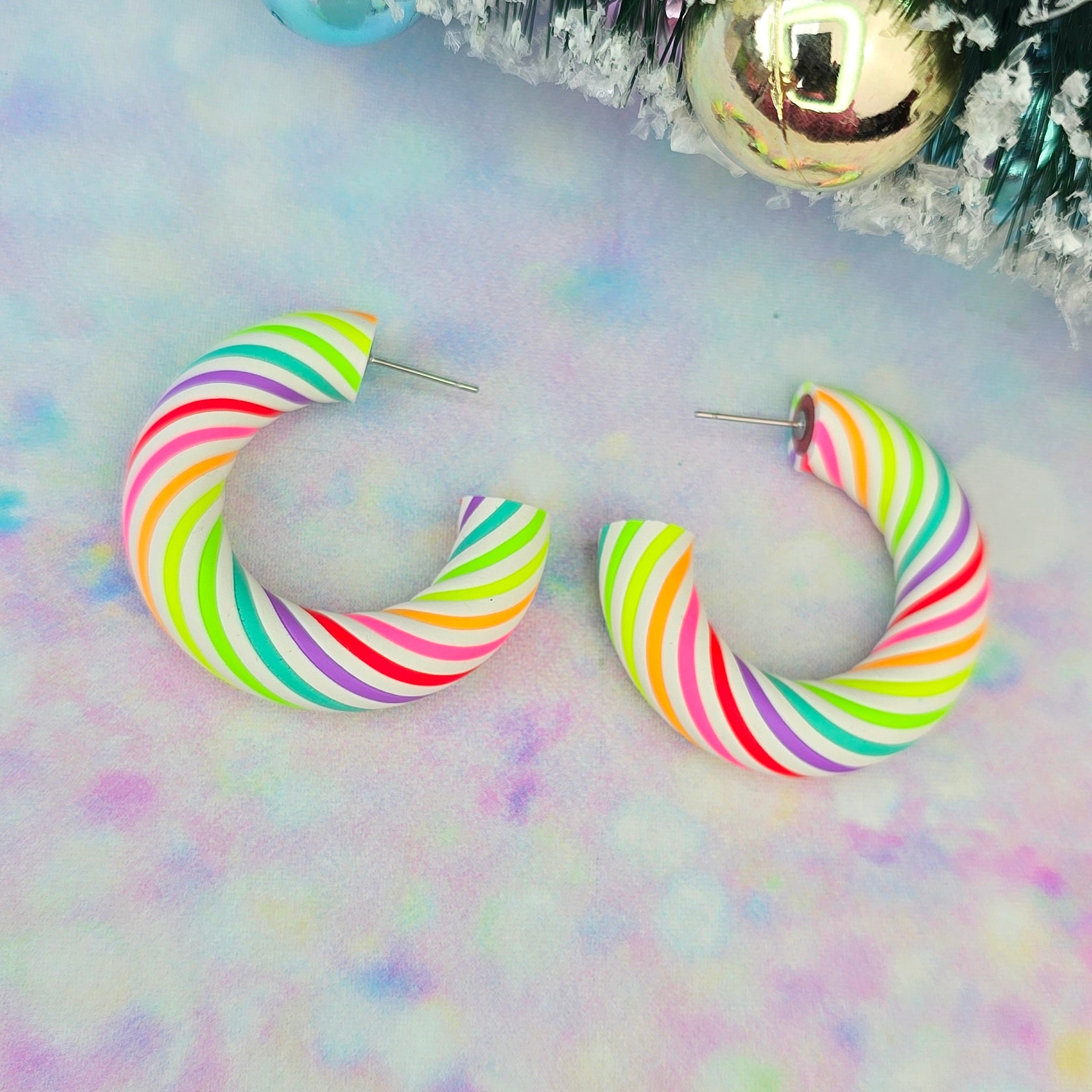 Christmas- Colourful Neon Candy Cane Twisted Hoops (All Sizes)