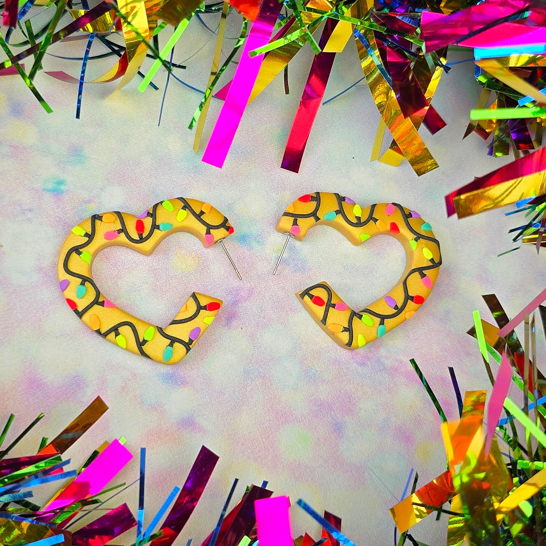 Christmas- Gold Fairy Light Large Heart Shaped Hoops