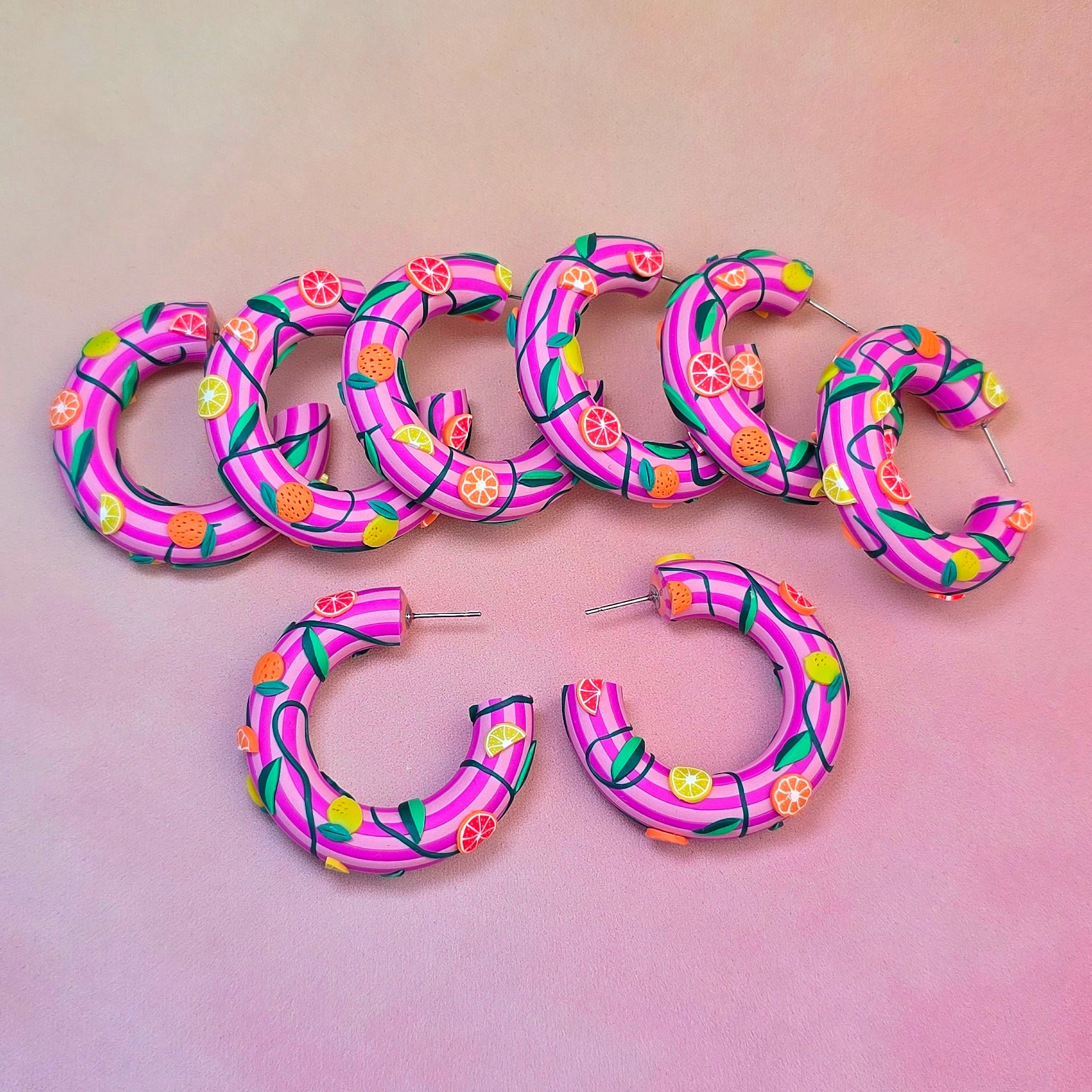 Step into Citrus Paradise, a sun‑soaked mini‑collection bursting with colour, texture, and pure summer joy. Each piece is hand‑sculpted from polymer clay, featuring tiny citrus slices, vibrant blends, and playful details that make every item feel like a little wearable holiday.