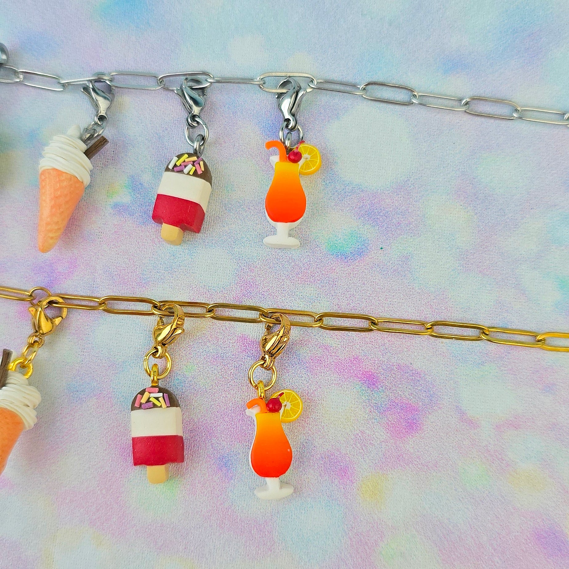 The charms have tiny clasps on them, you can choose between gold or silver. The clasps make it super easy to add or remove from your necklace!
