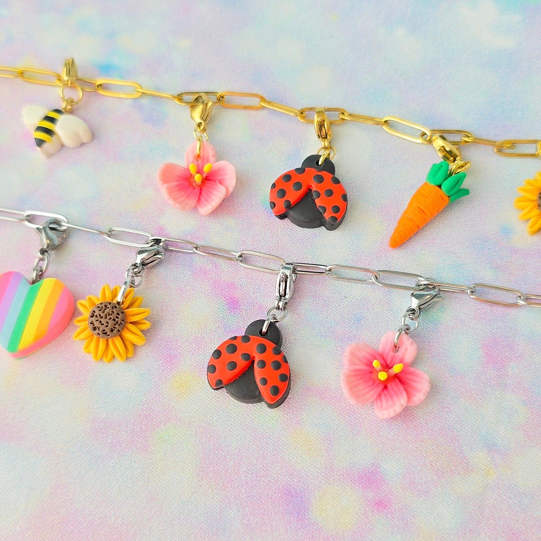 The charms have tiny clasps on them, you can choose between gold or silver. The clasps make it super easy to add or remove from your necklace!