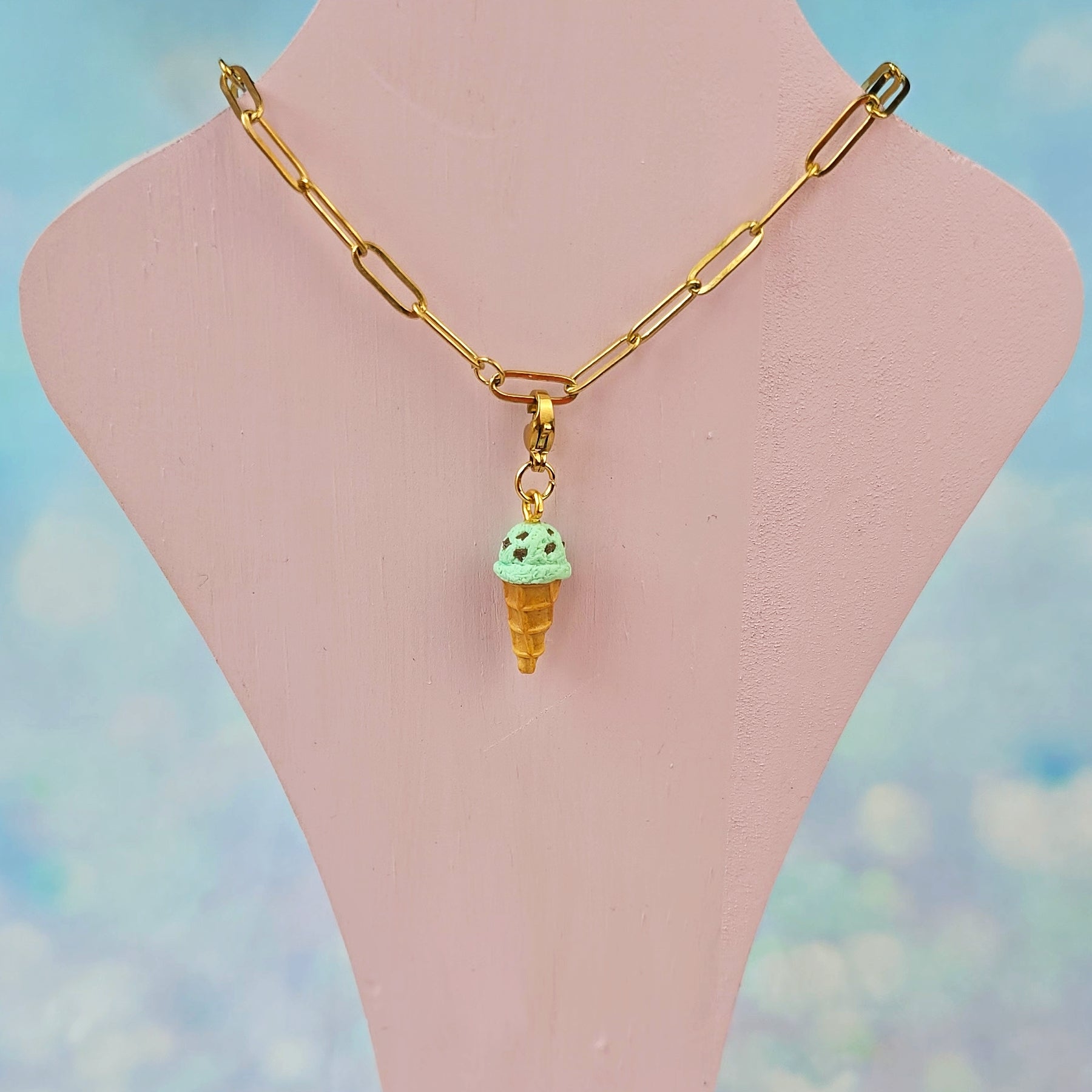 Mint Chocolate Chip Ice Cream Necklace Charm (Charm Only)