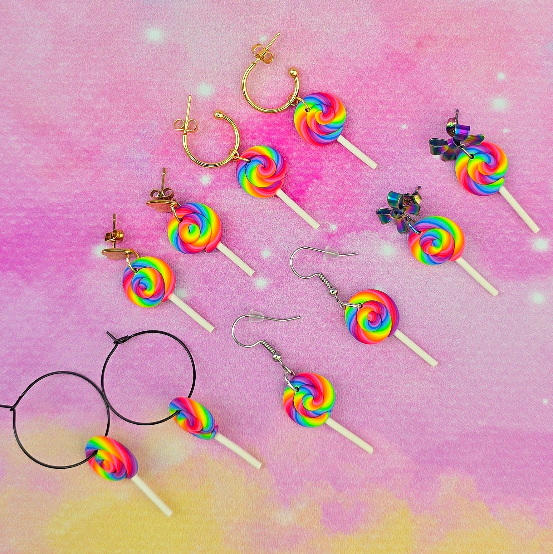 Each lollipop is handmade without clay cutters, giving it a one-of-a-kind shape and texture that’s full of character. Crafted from a swirl of vibrant neon clay colours, these dangles are bold, joyful, and designed to stand out.