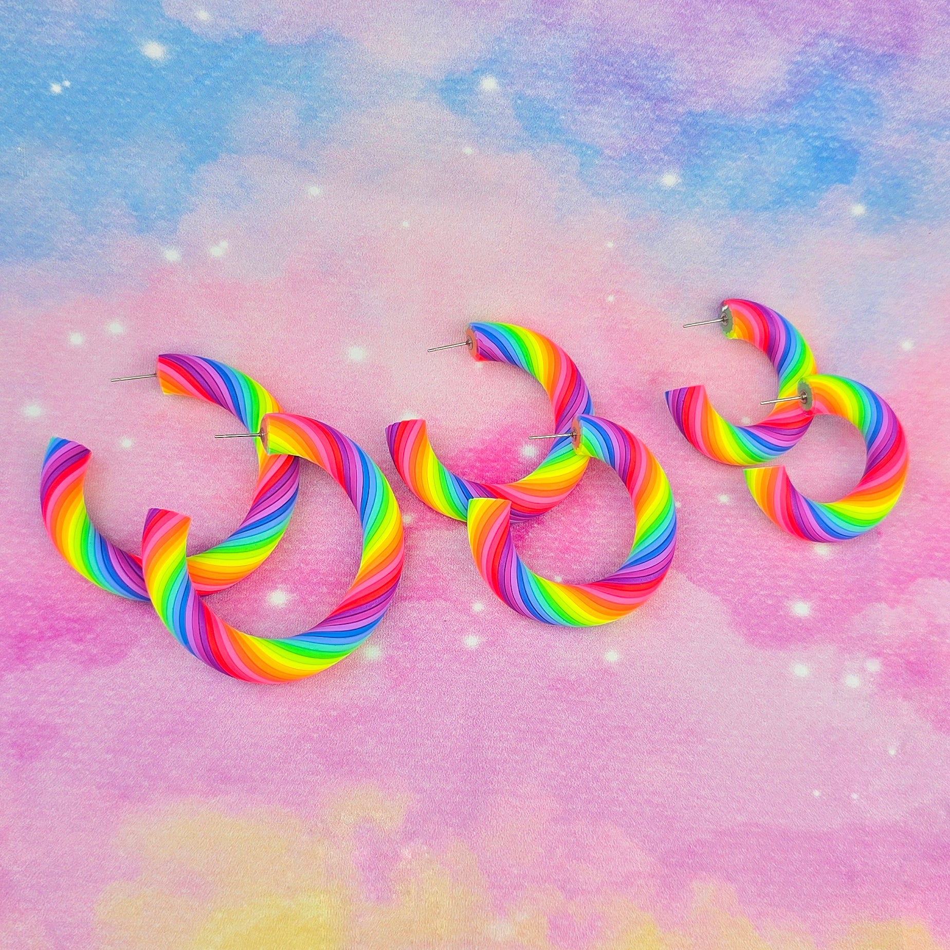 Handmade from 15 vibrant neon clay colours, these hoops are hand-twisted to create a textured ombré effect that’s full of movement and personality. Each pair is sculpted by hand, giving them a soft, organic feel and a joyful glow.