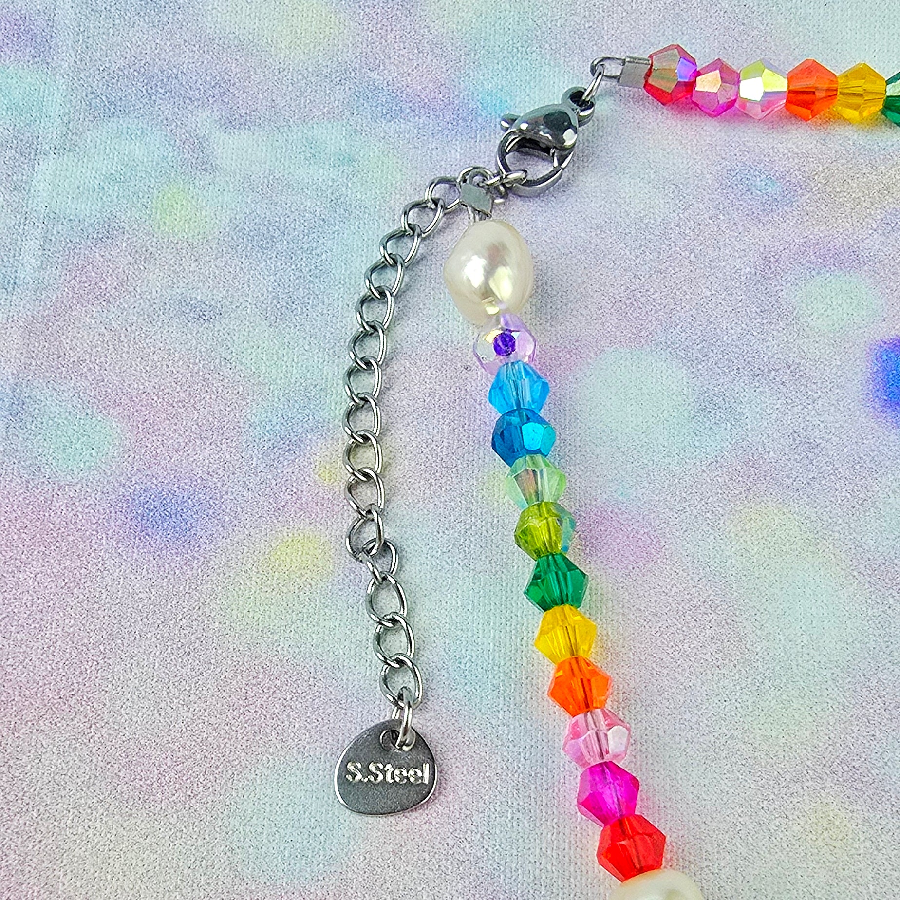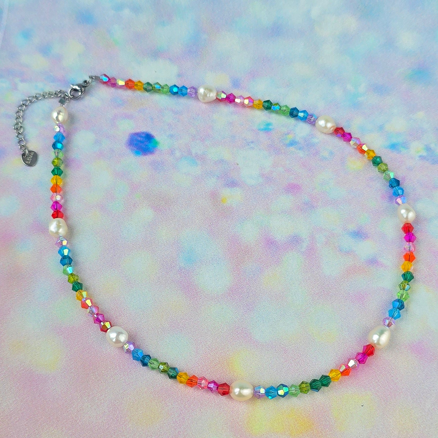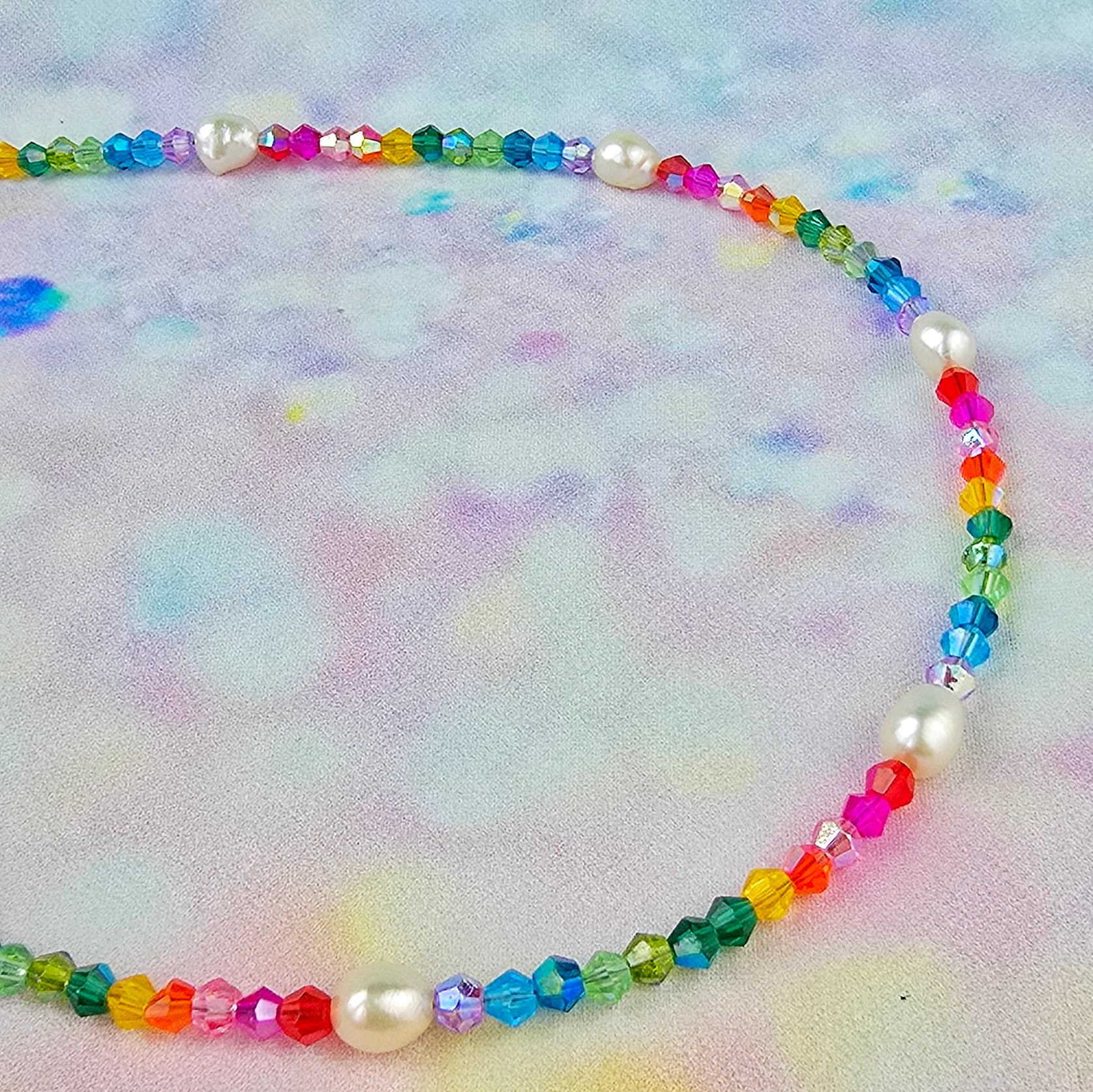 Rainbow Glass Beaded Necklace With Freshwater Pearls