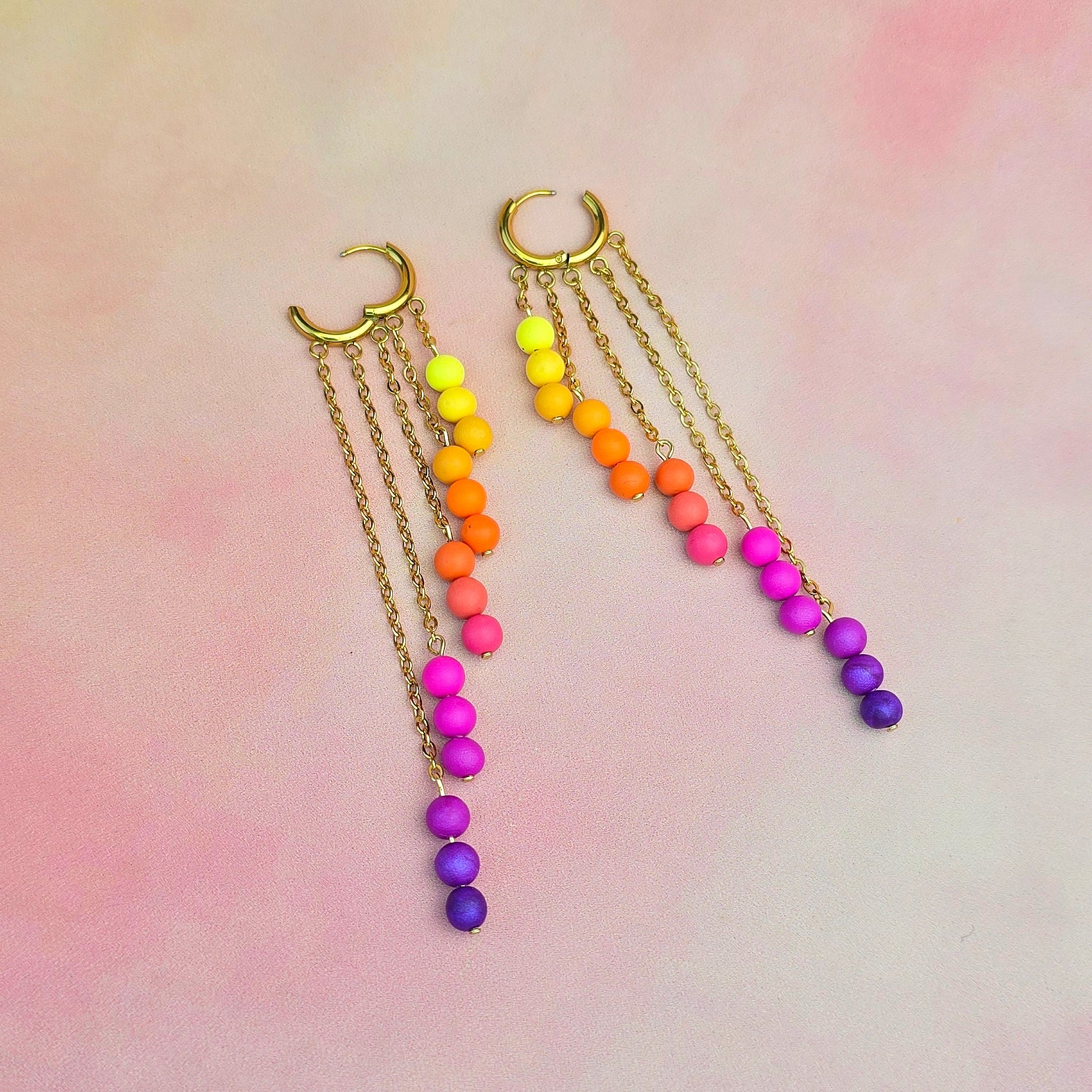 A little slice of sunset, captured in five playful drops. Each pair is handcrafted with 30 beads from my Sunset colourway, arranged on a made‑from‑scratch fixture for a completely unique finish.