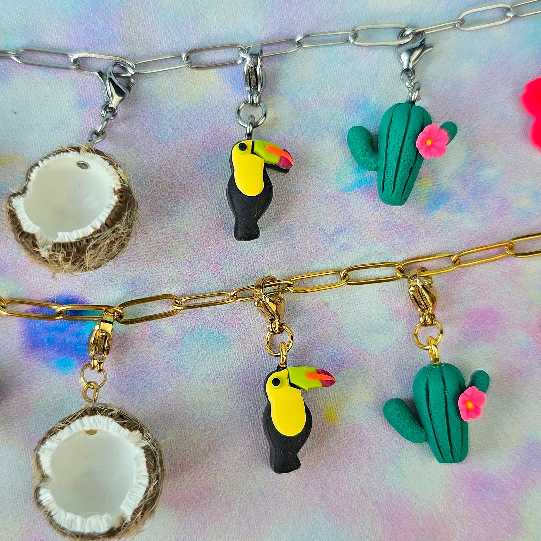 The charms have tiny clasps on them, you can choose between gold or silver. The clasps make it super easy to add or remove from your necklace!